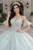 Step into your fairytale moment with this enchanting mint green princess ball gown. Designed with a romantic off-shoulder sweetheart neckline and a sculpted corset bodice, the gown is adorned with delicate crystal embroidery and shimmering lace appliqué that softly catches the light. The voluminous glitter tulle skirt creates a dreamy, floating silhouette, while the open lace-up corset back ensures a perfectly adjustable fit and beautifully defined waistline. A timeless statement of elegance and grace for your unforgettable celebration.• Silhouette: Classic Princess Ball Gown
