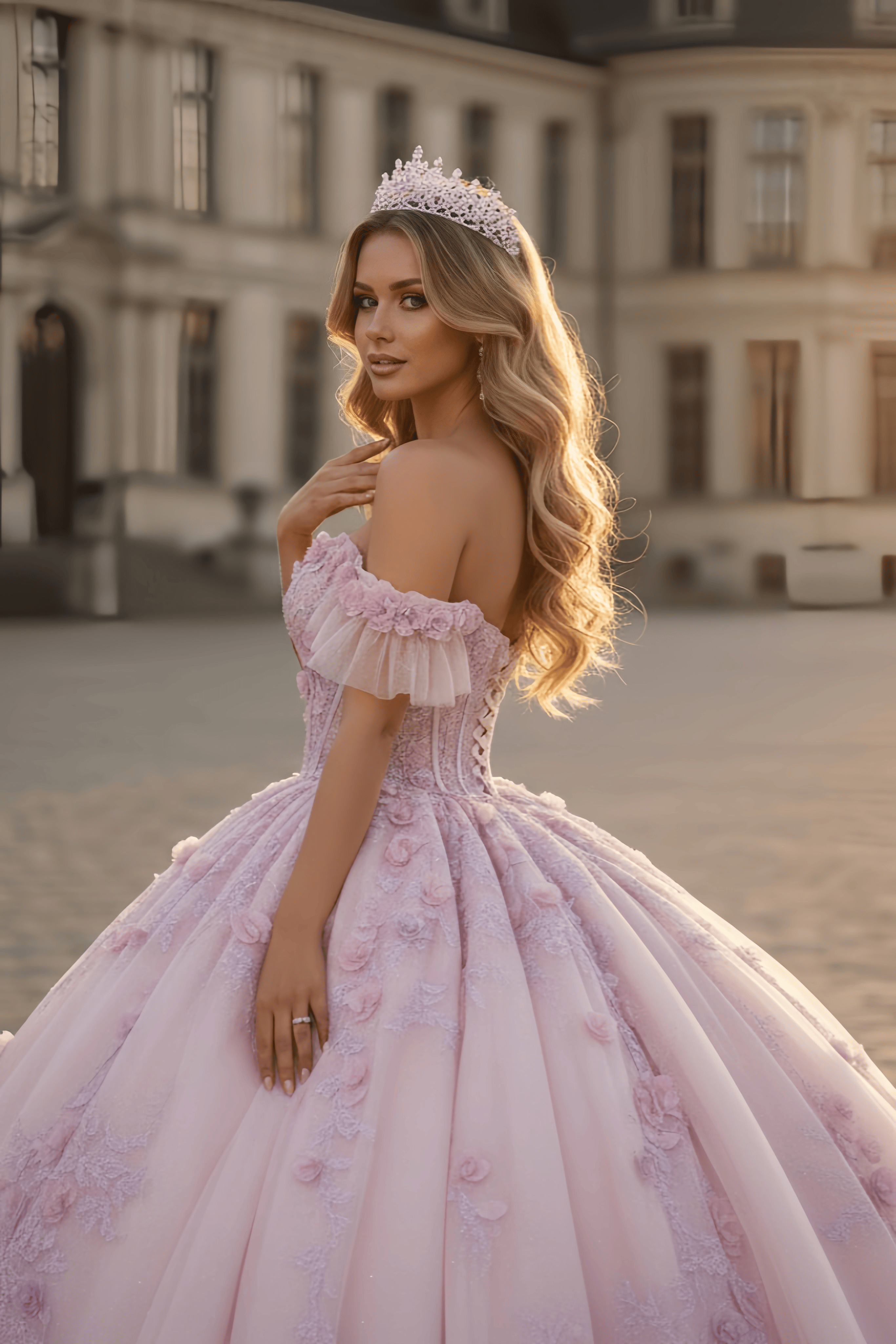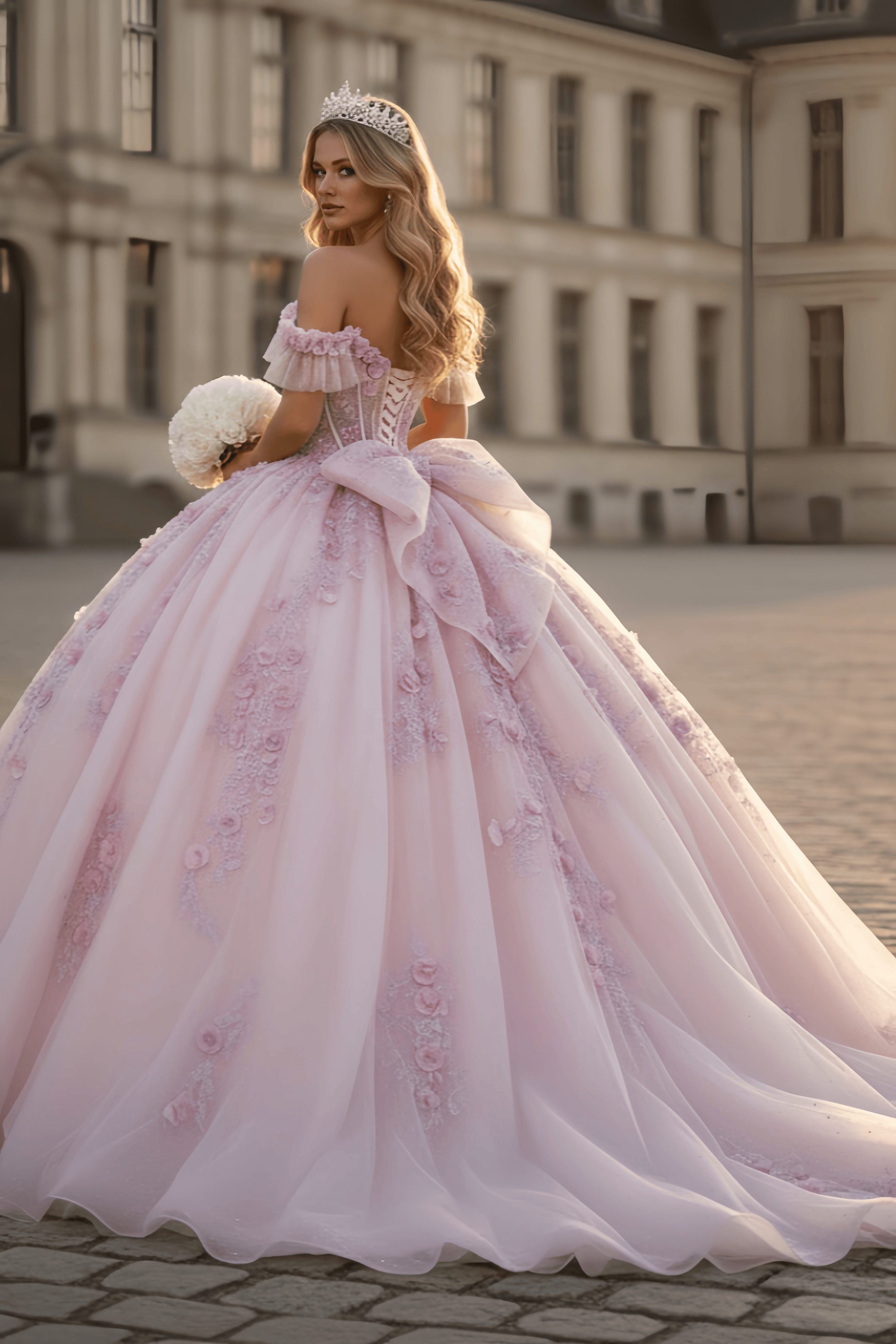 Romantic 3D Floral Off-Shoulder Princess Ball Gown Quinceanera Dresses