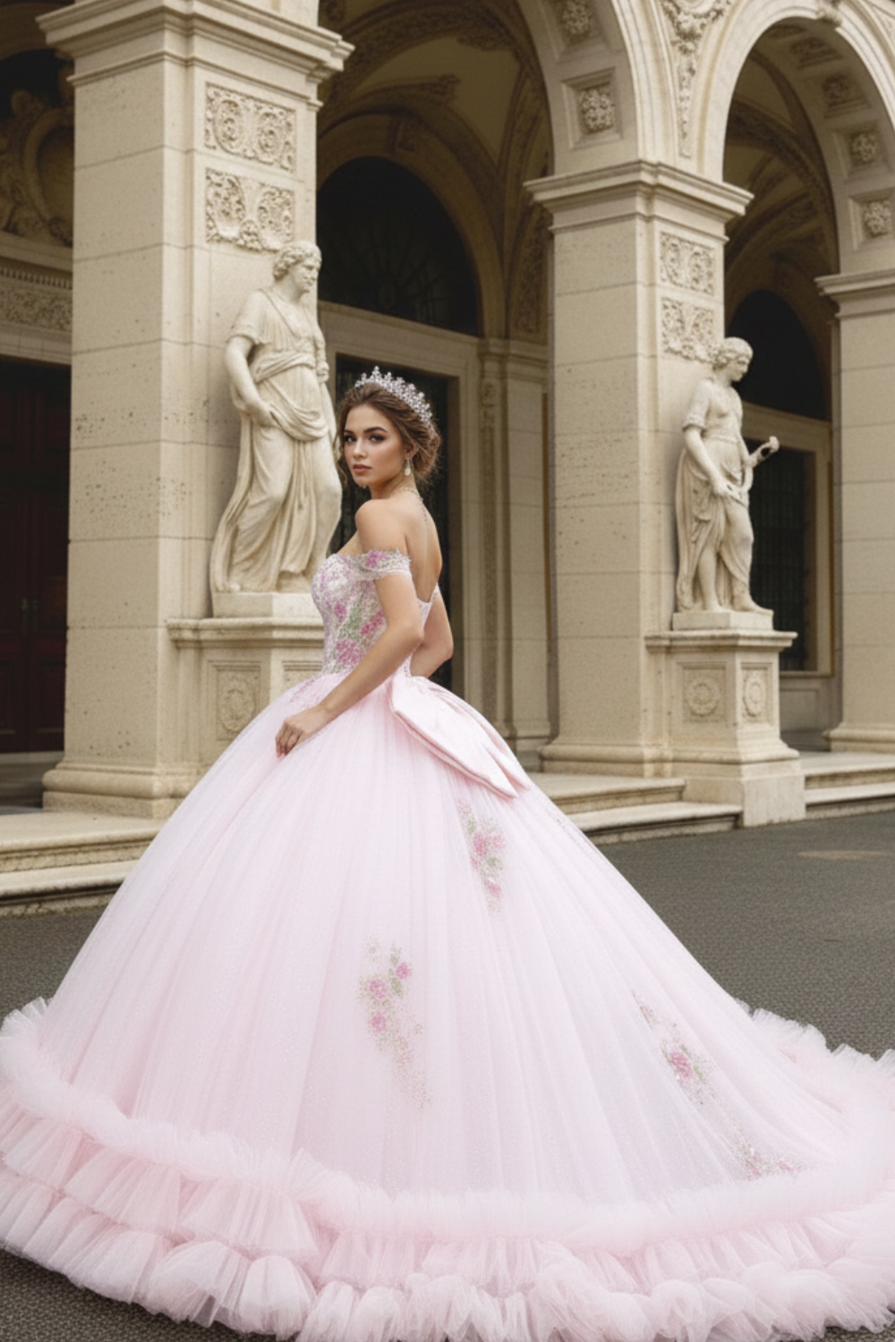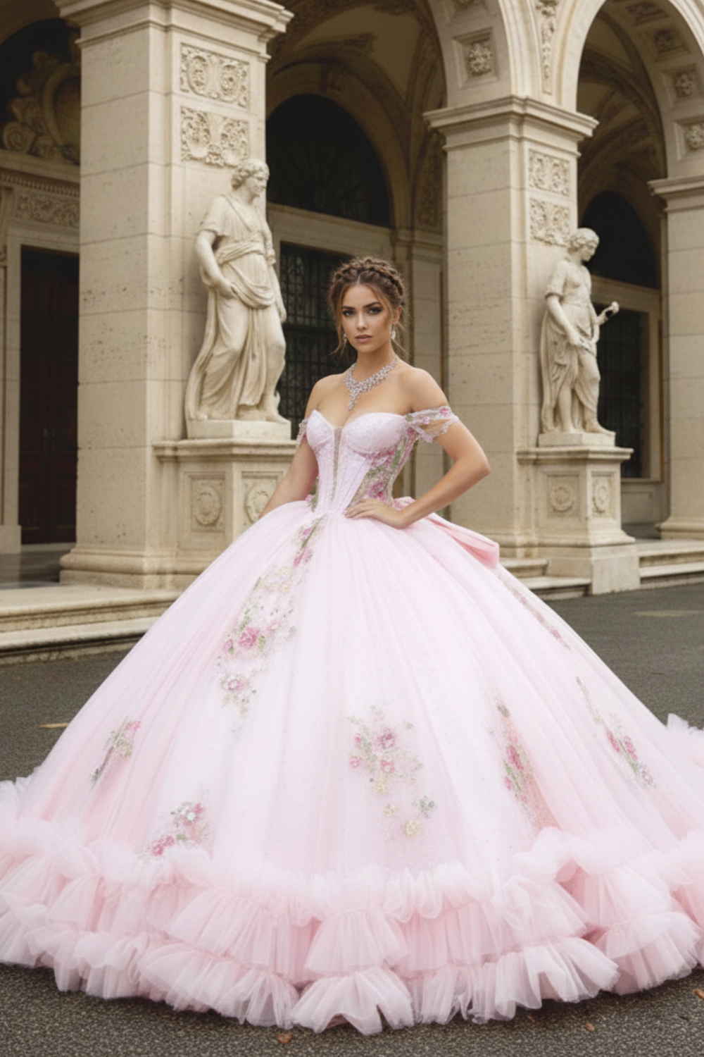 Romantic Blush Floral Embroidered Princess Ball Gown Quinceanera Dresses