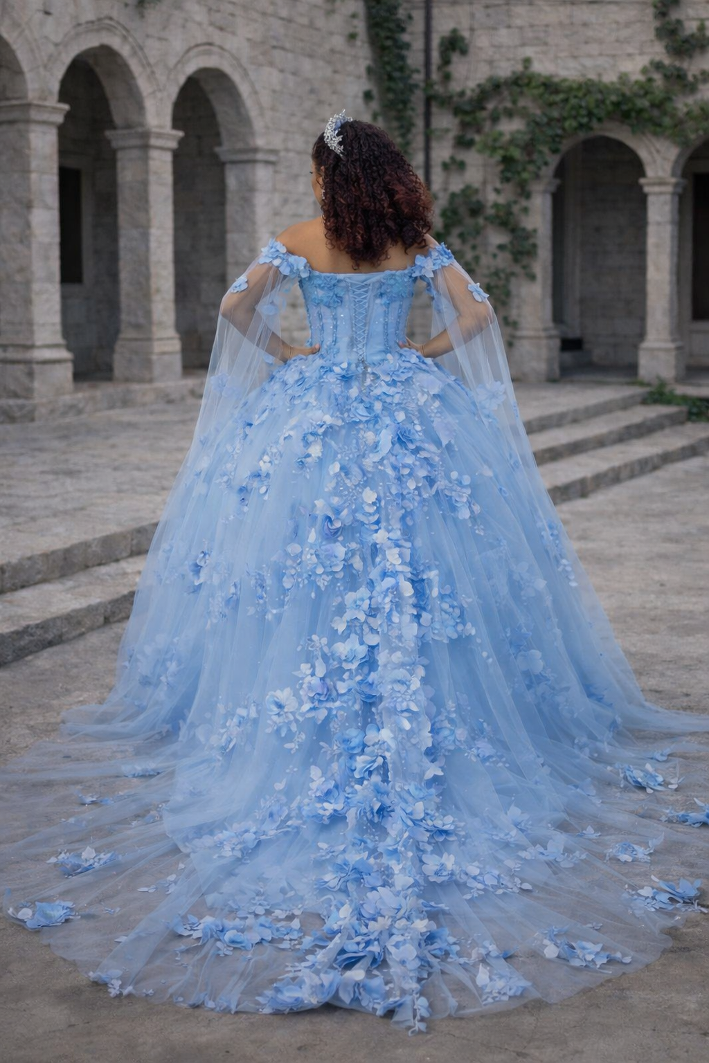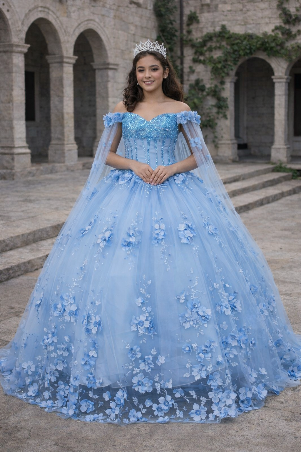 Sky Blossom Off-Shoulder Floral Ball Gown Quinceanera Dresses