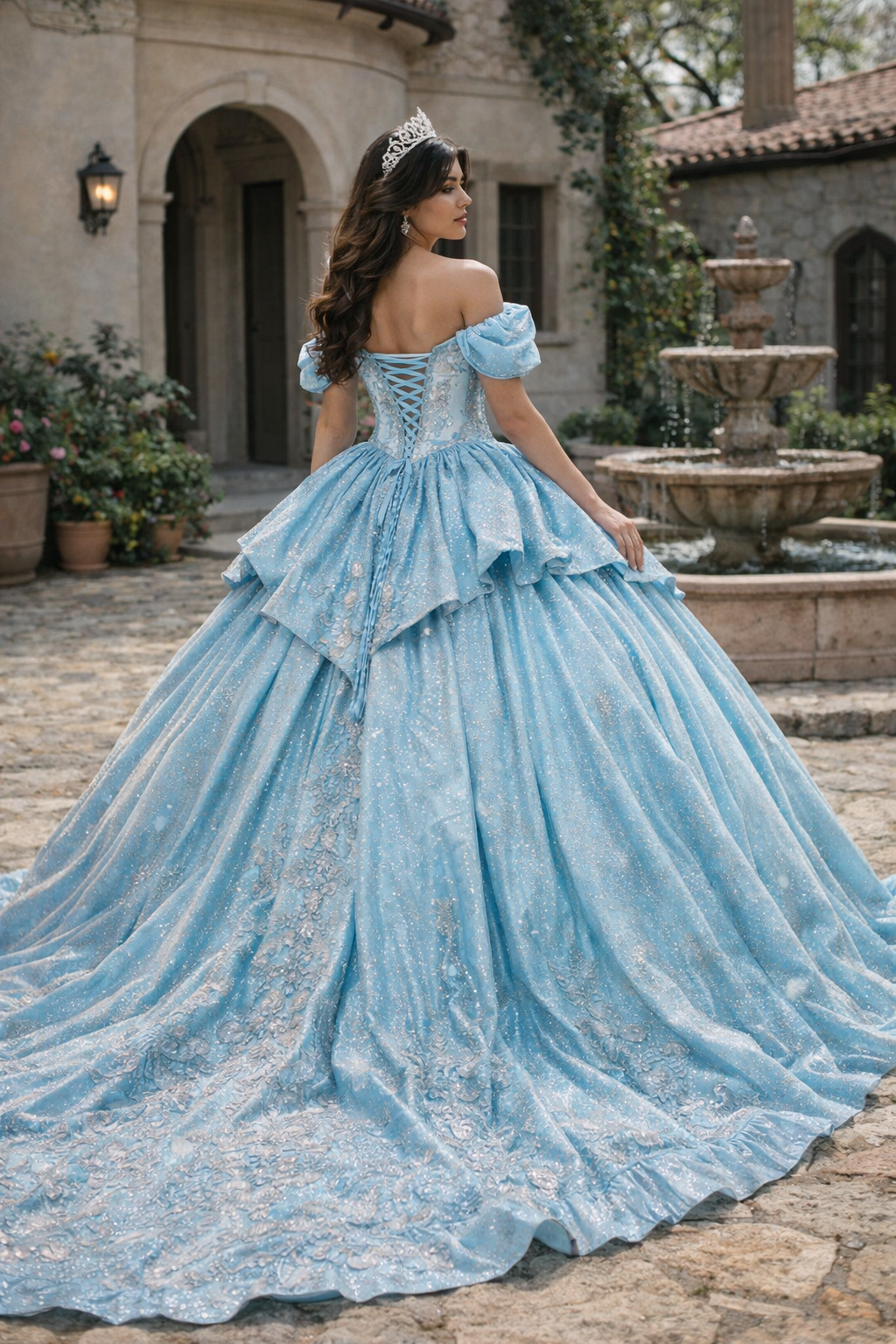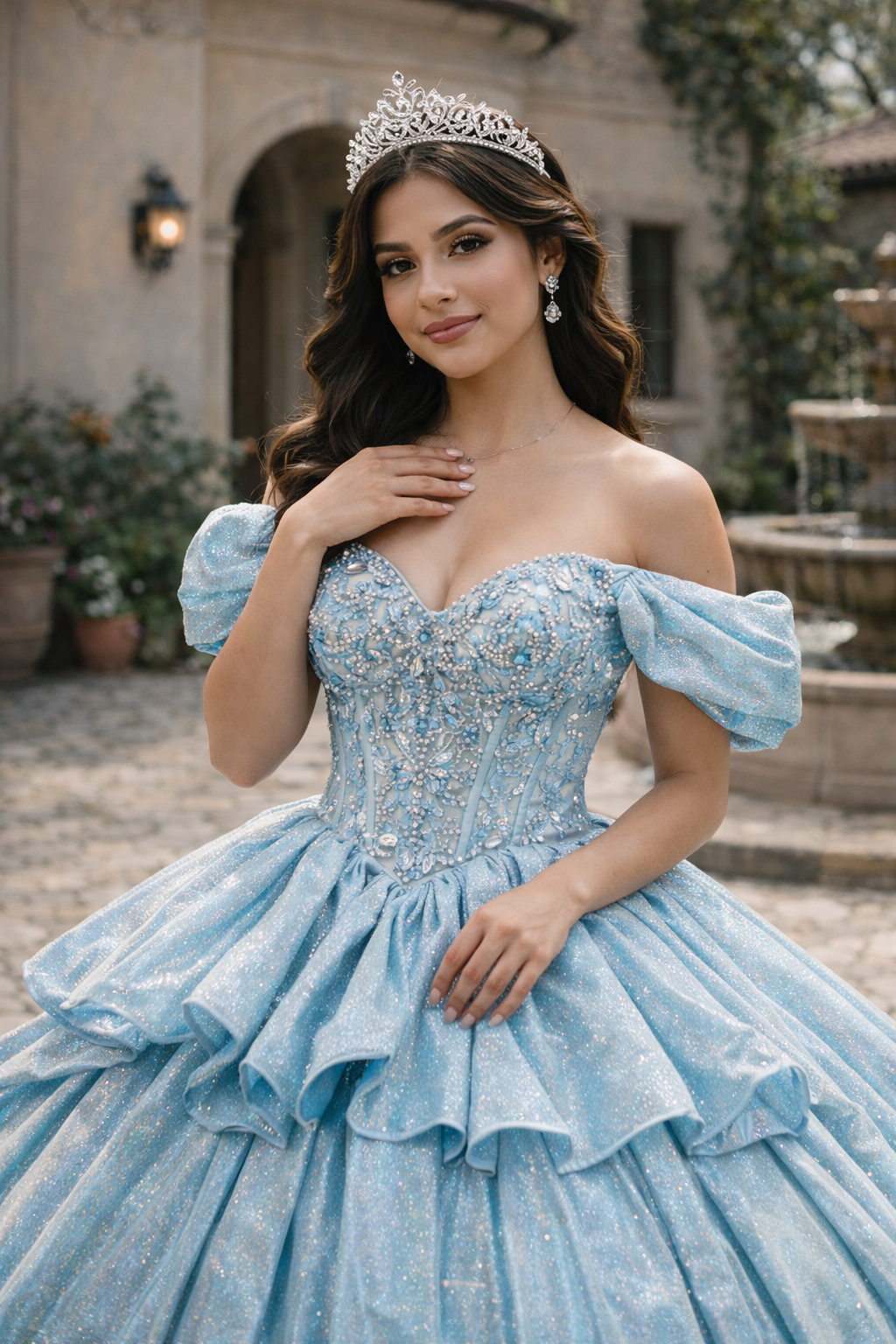 Sparkling Ice Blue Layered Princess Ball Gown – Quinceanera Dresses