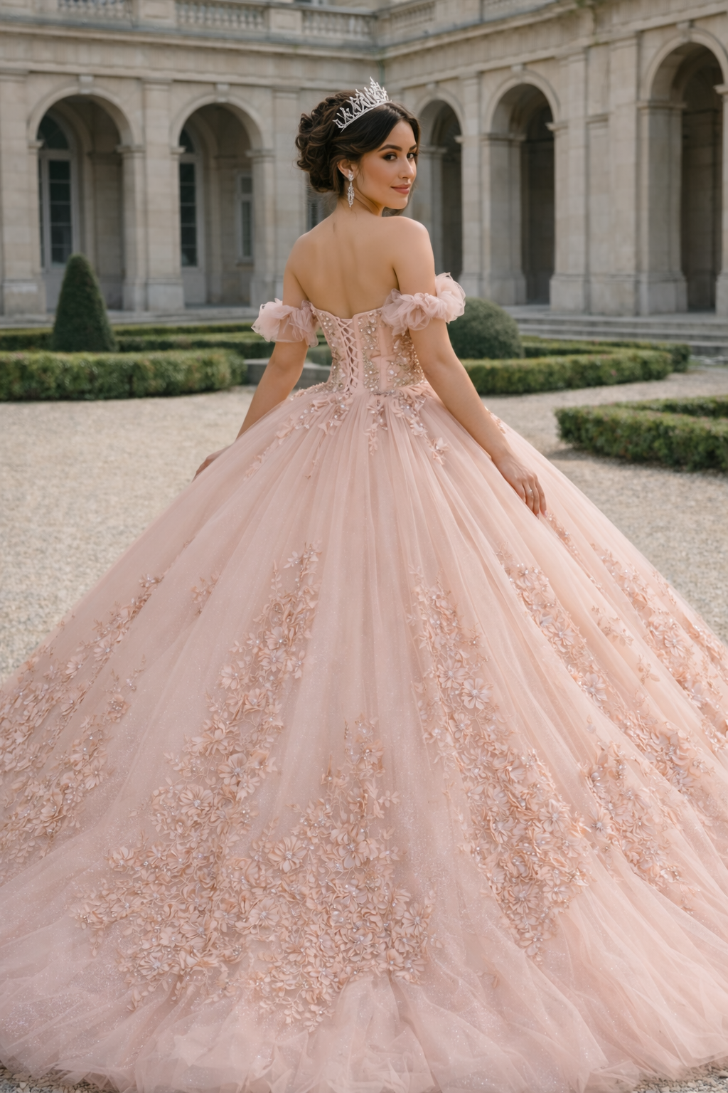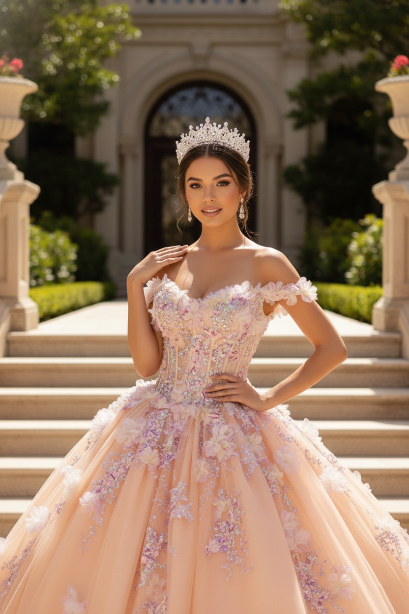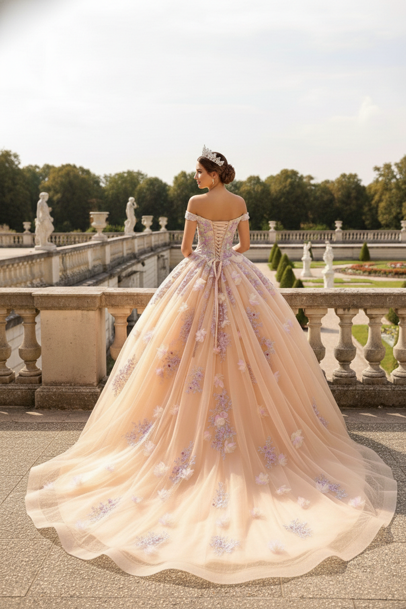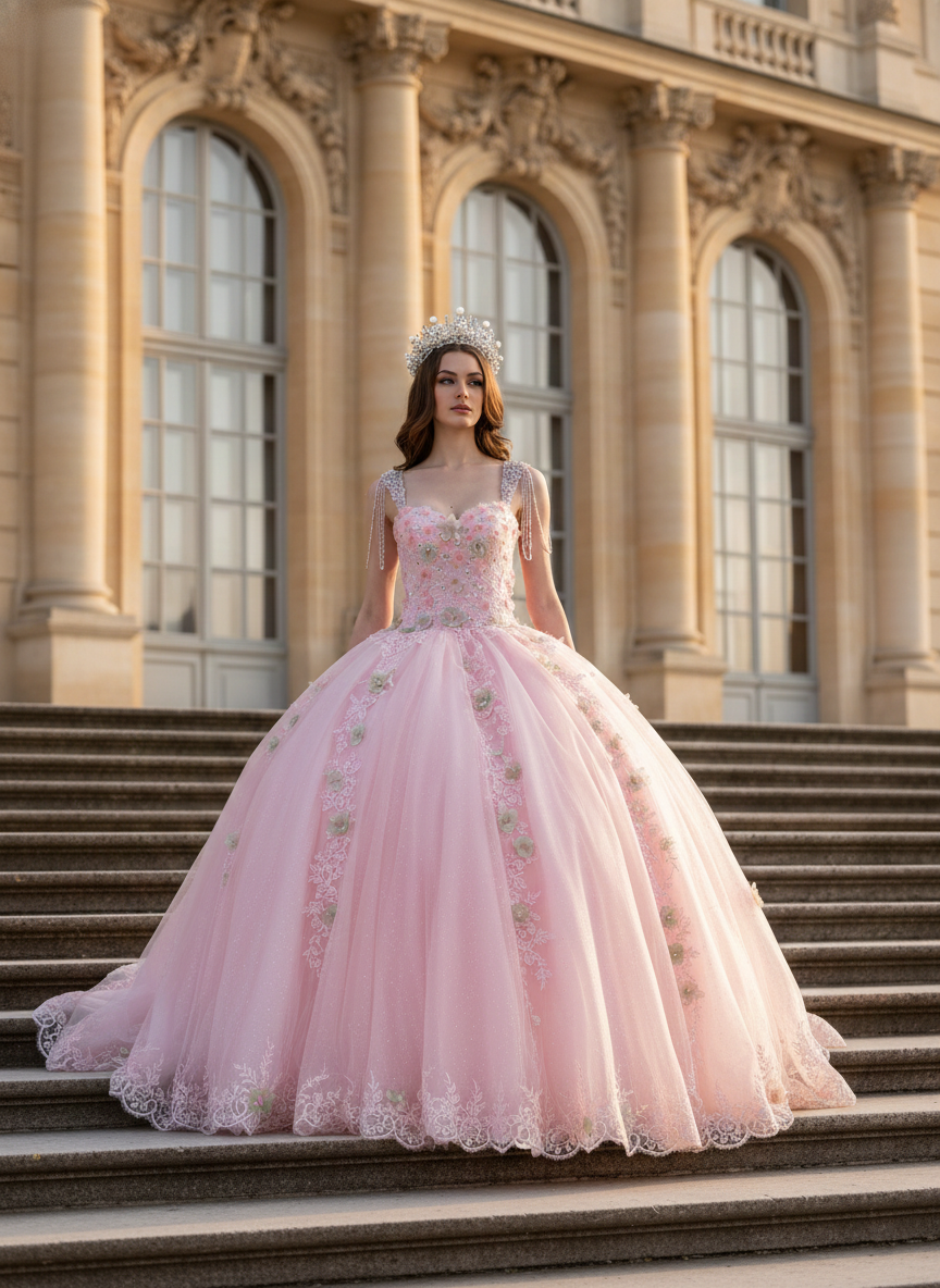 Blush Bloom Embroidered Princess Ball Gown Quinceanera Dresses
