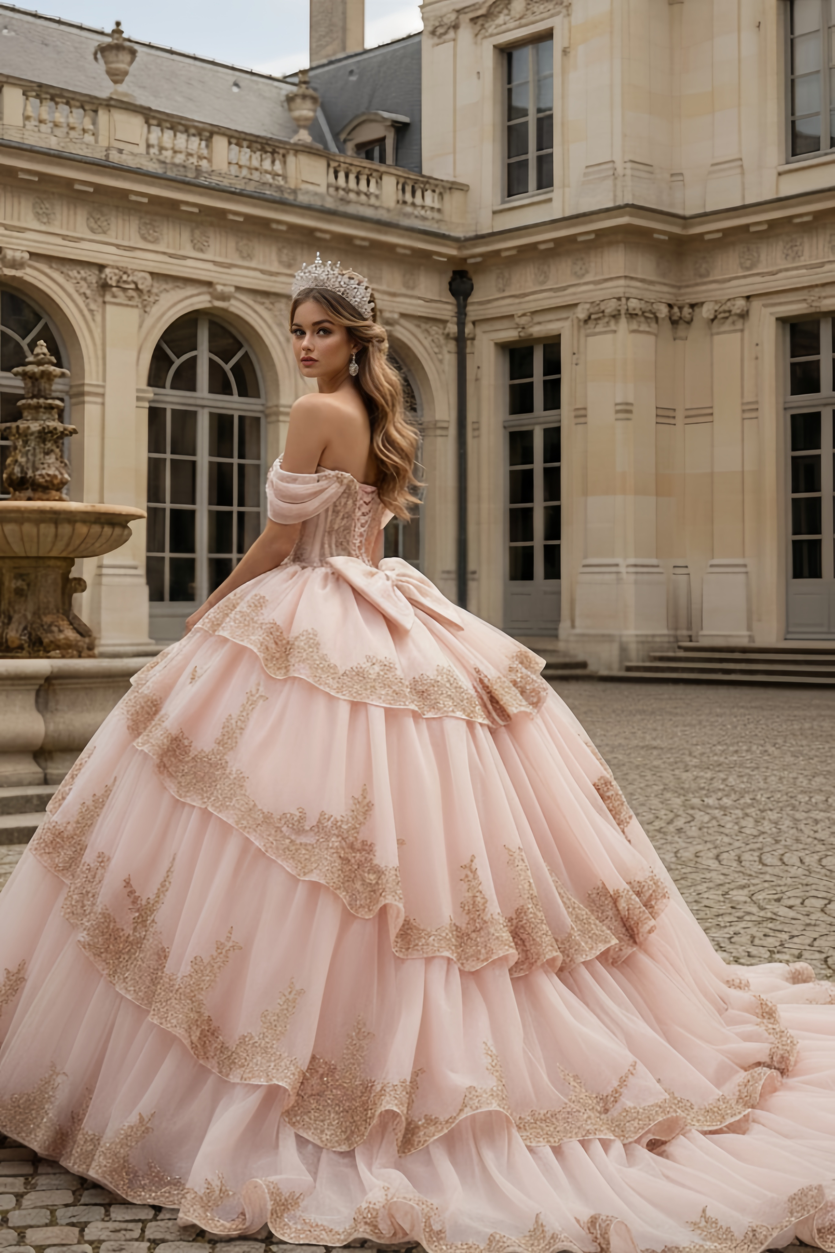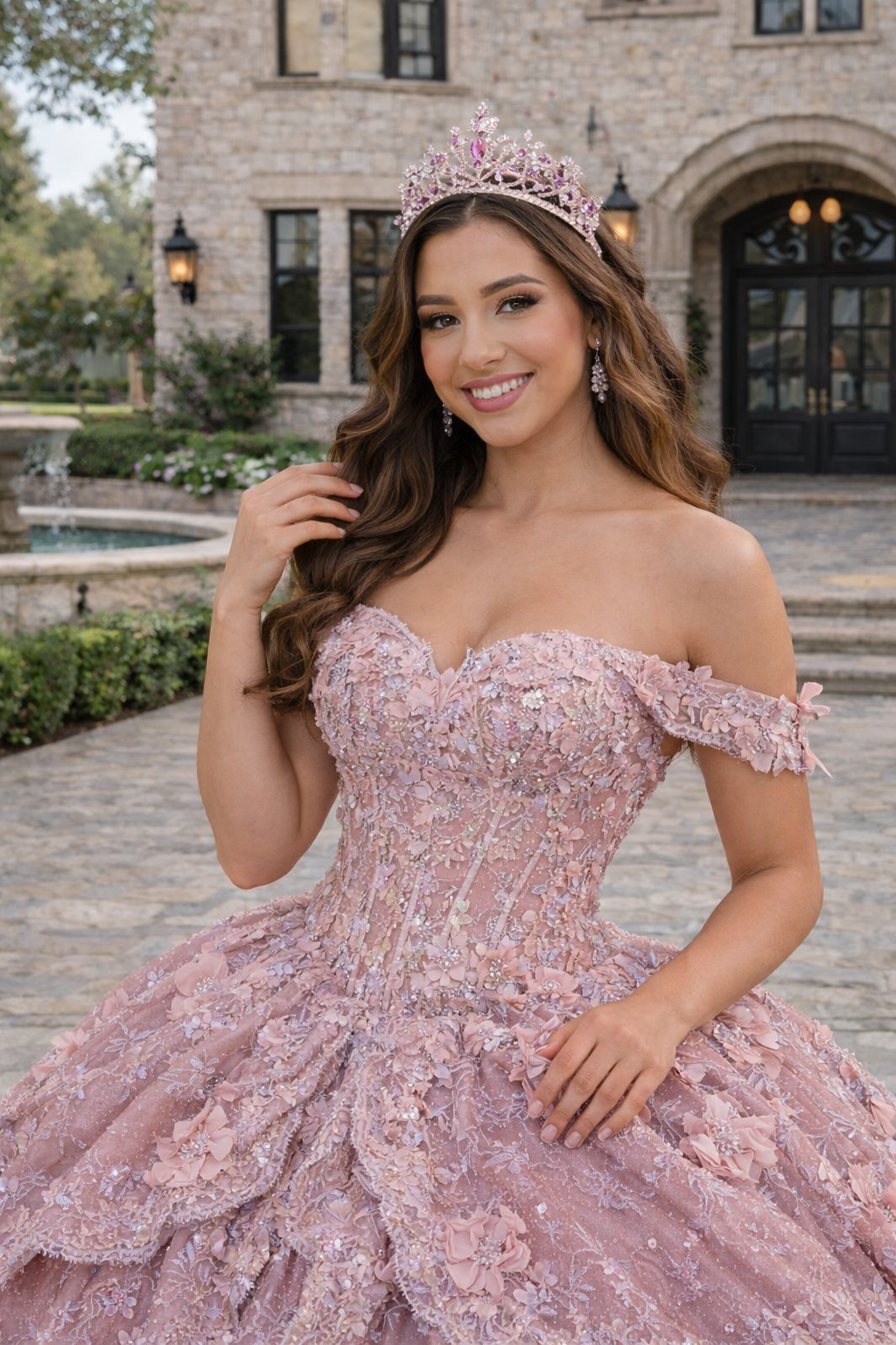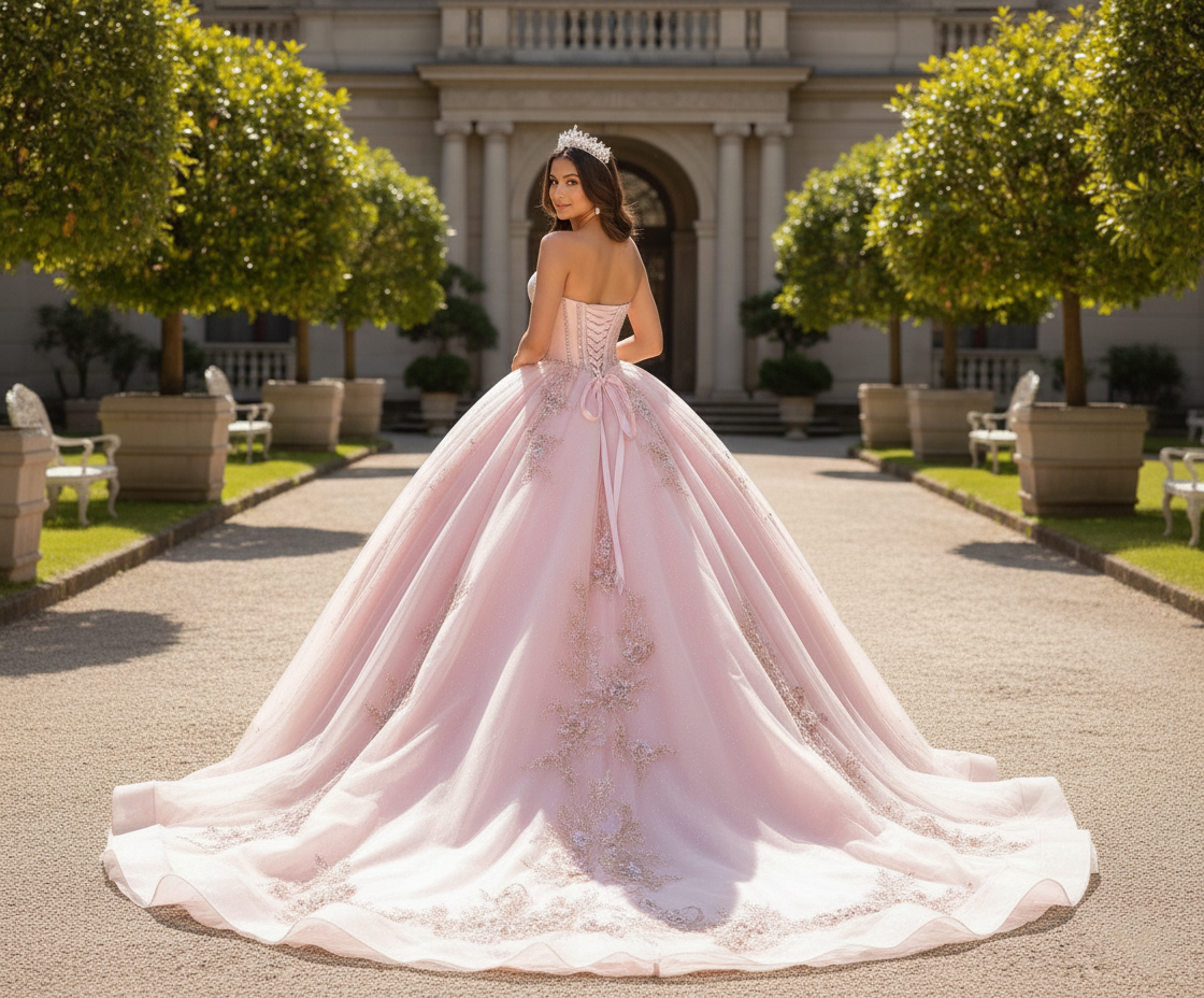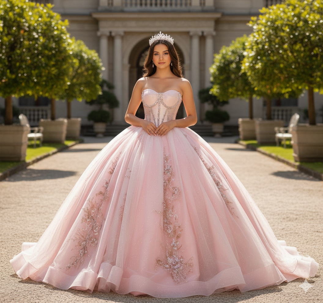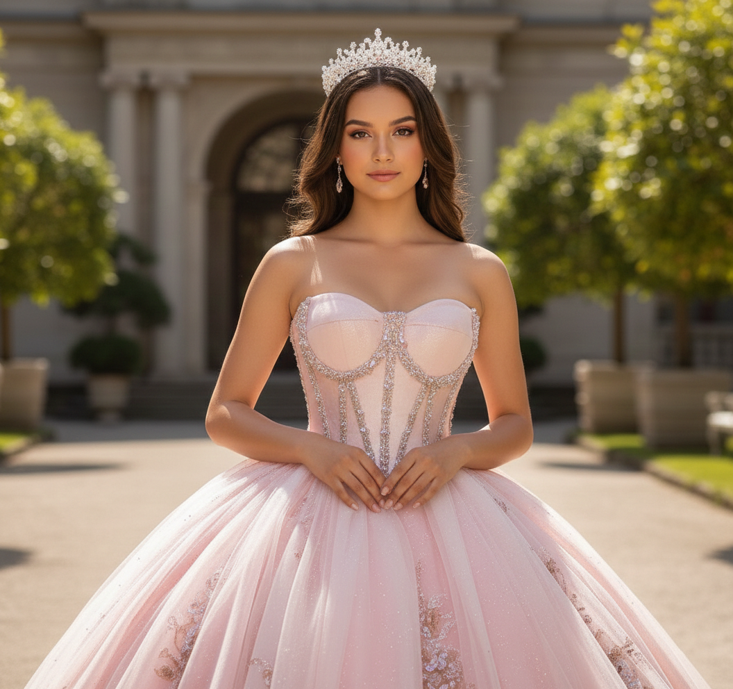 Blush Crystal Corset Ball Gown – Quinceanera Dresses
