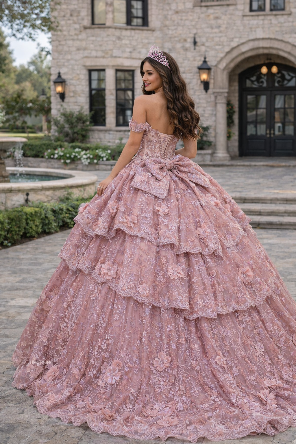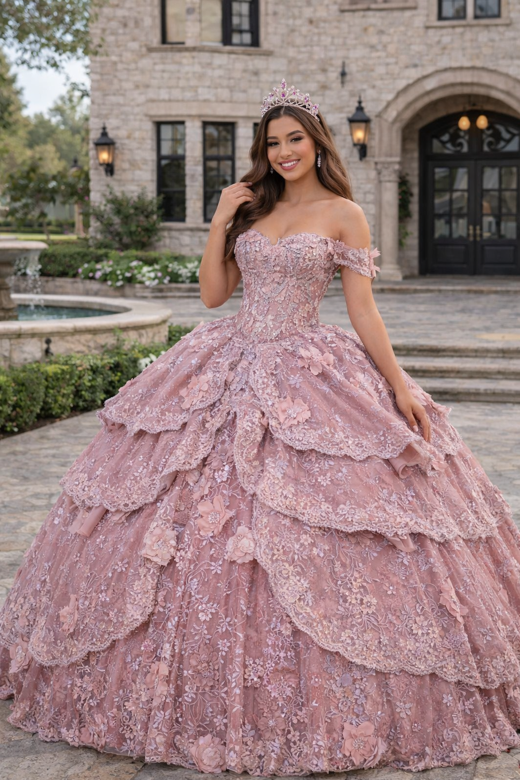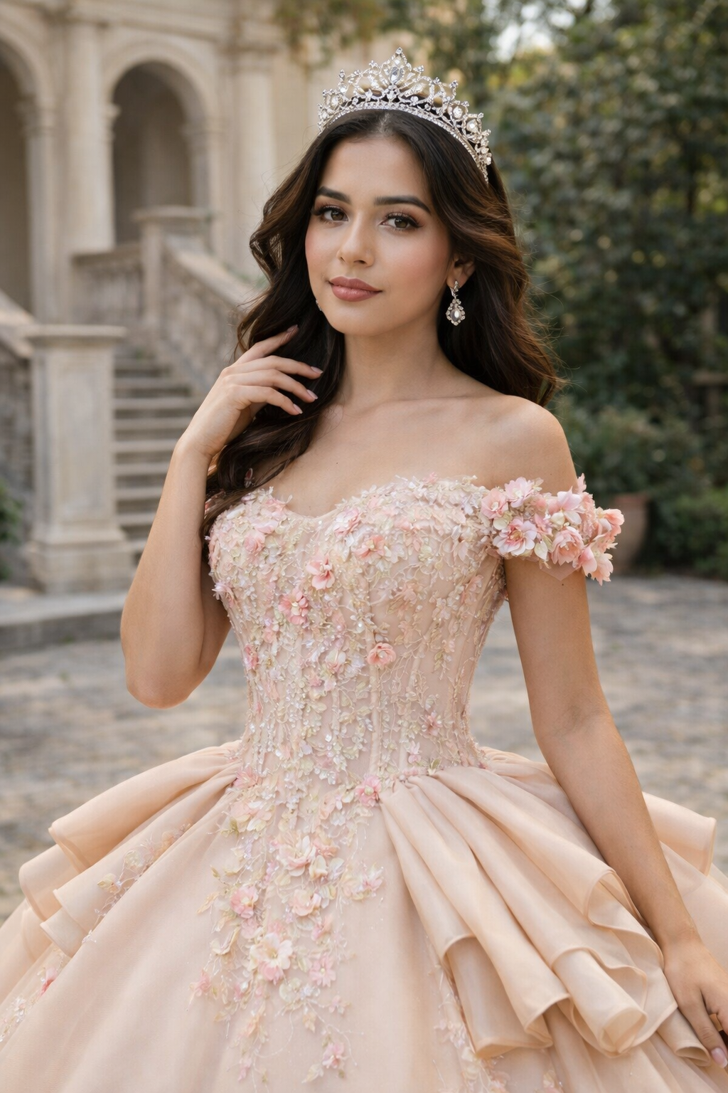 Blush 3D Floral Tiered Princess Ball Gown Quinceanera Dresses