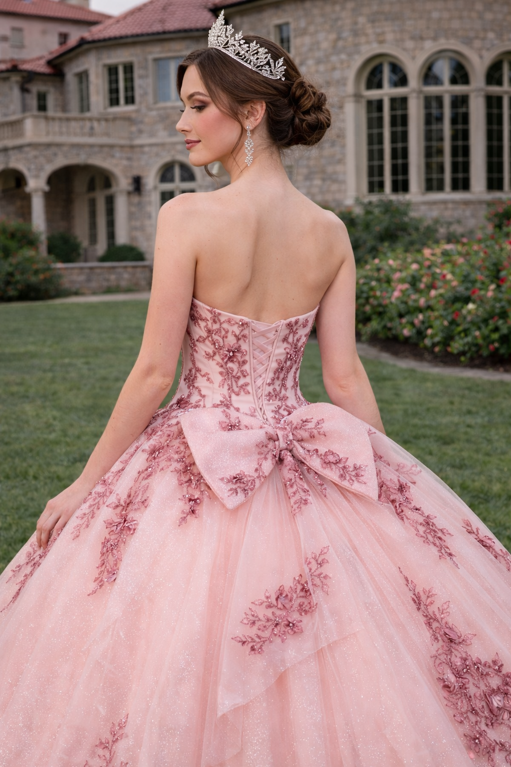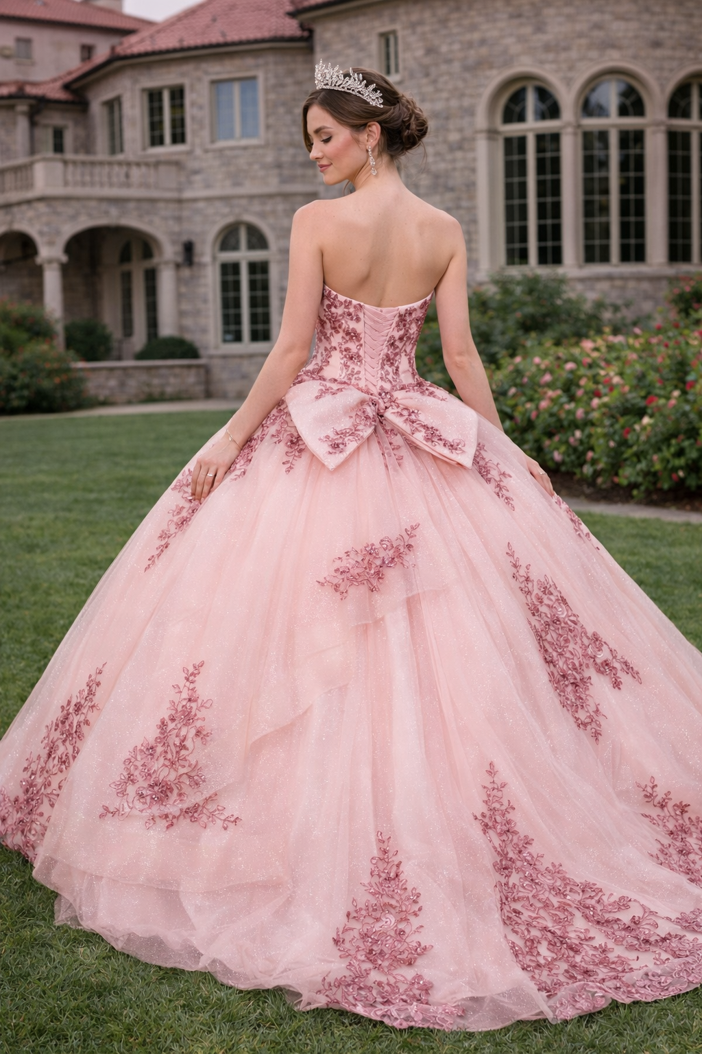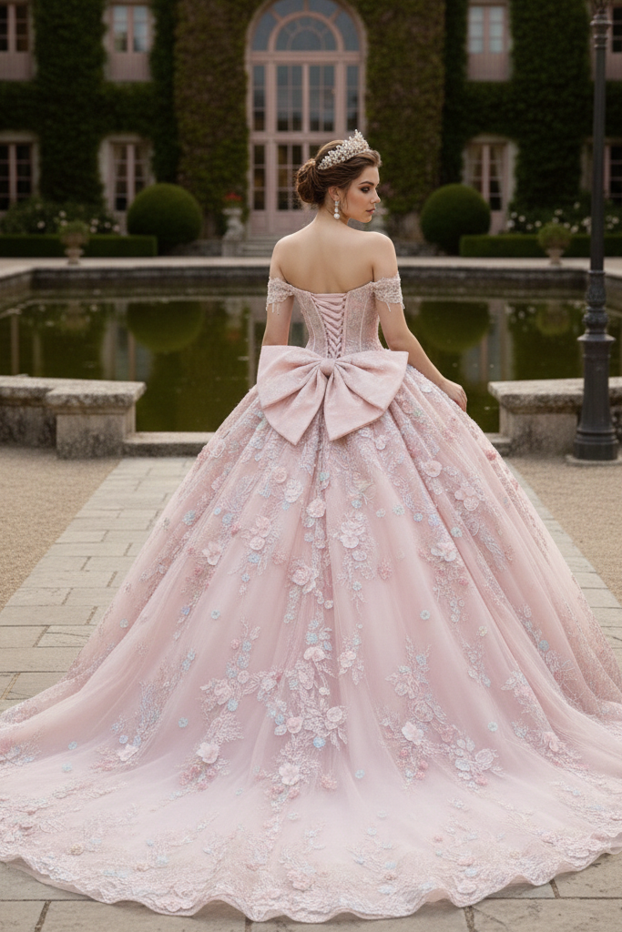 Blush Pink Corset Ball Gown with Statement Bow Quinceanera Dresses