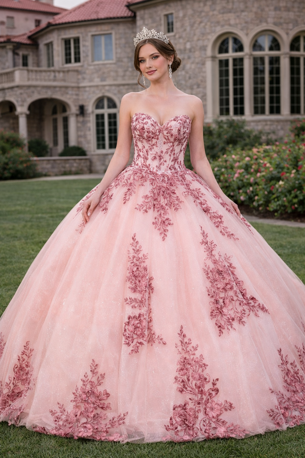 Blush Garden Floral Ball Gown Quinceanera Dresses
