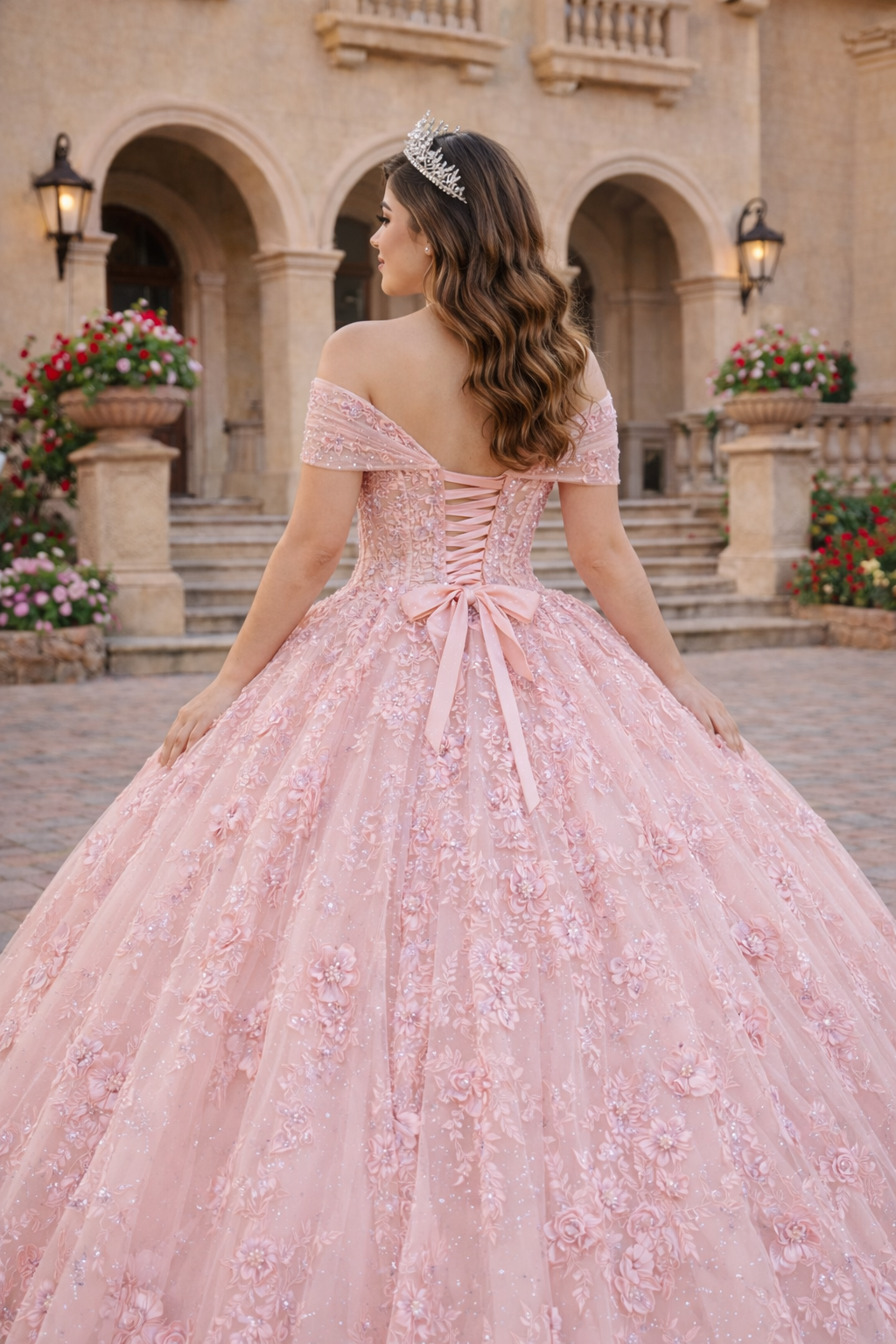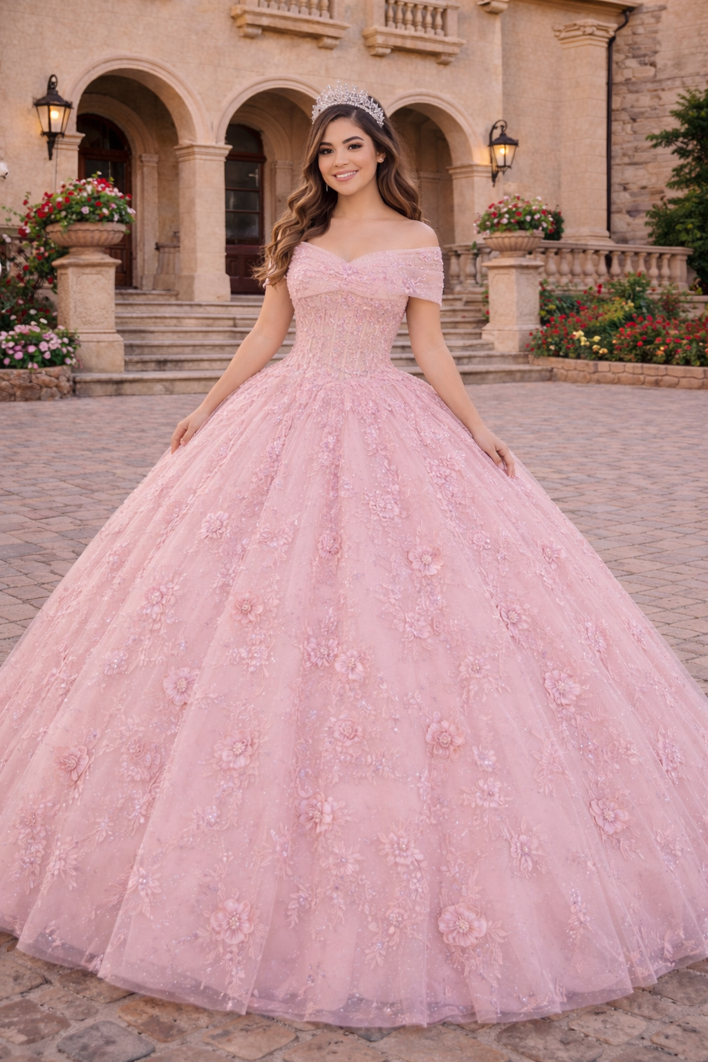 Blush Pink 3D Floral Princess Ball Gown Quinceanera Dresses