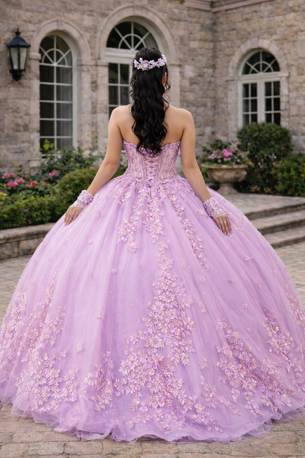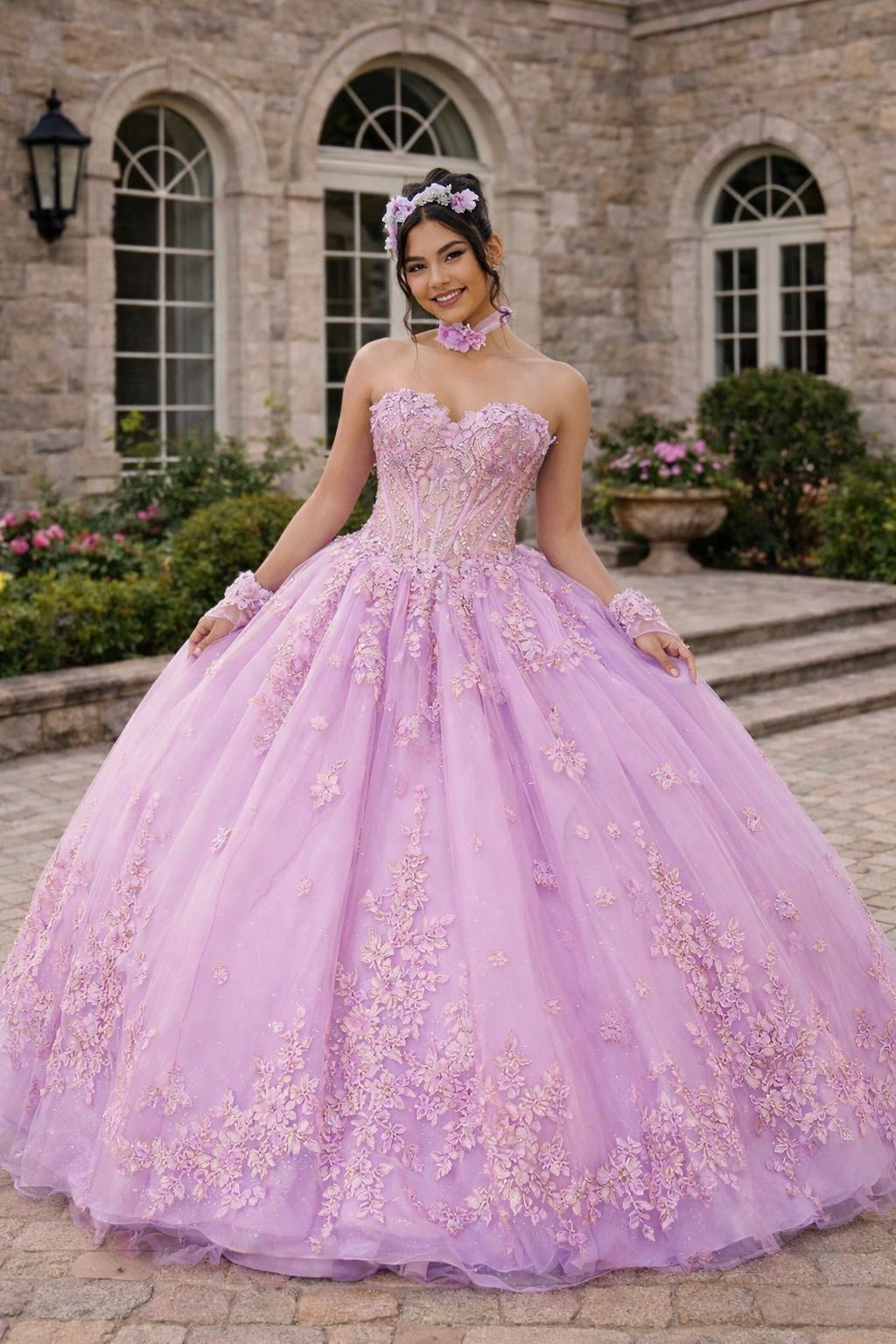 Blush Lilac 3D Floral Corset Ball Gown with Open Lace-Up Back – Quinceanera Dresses