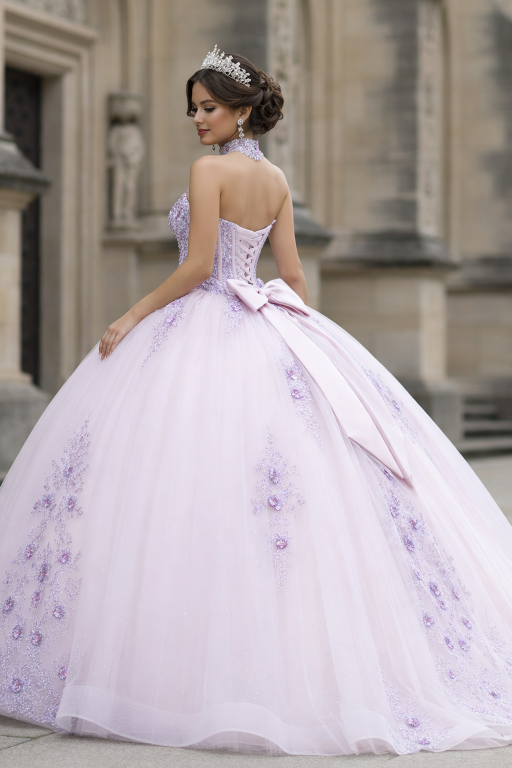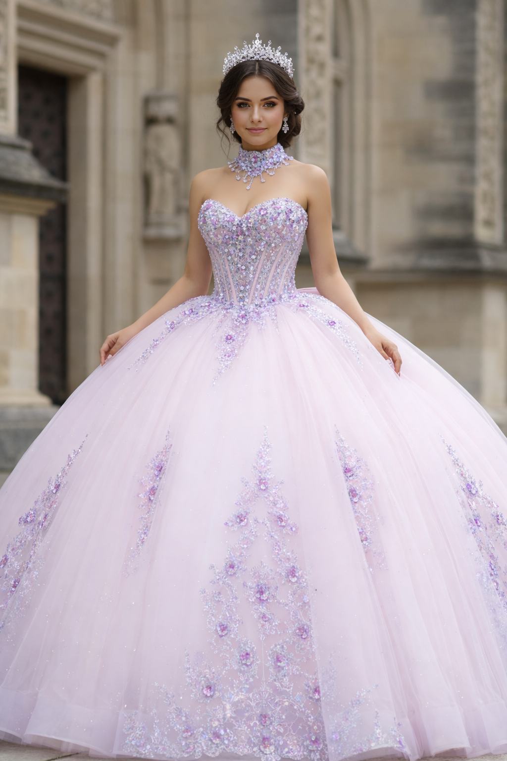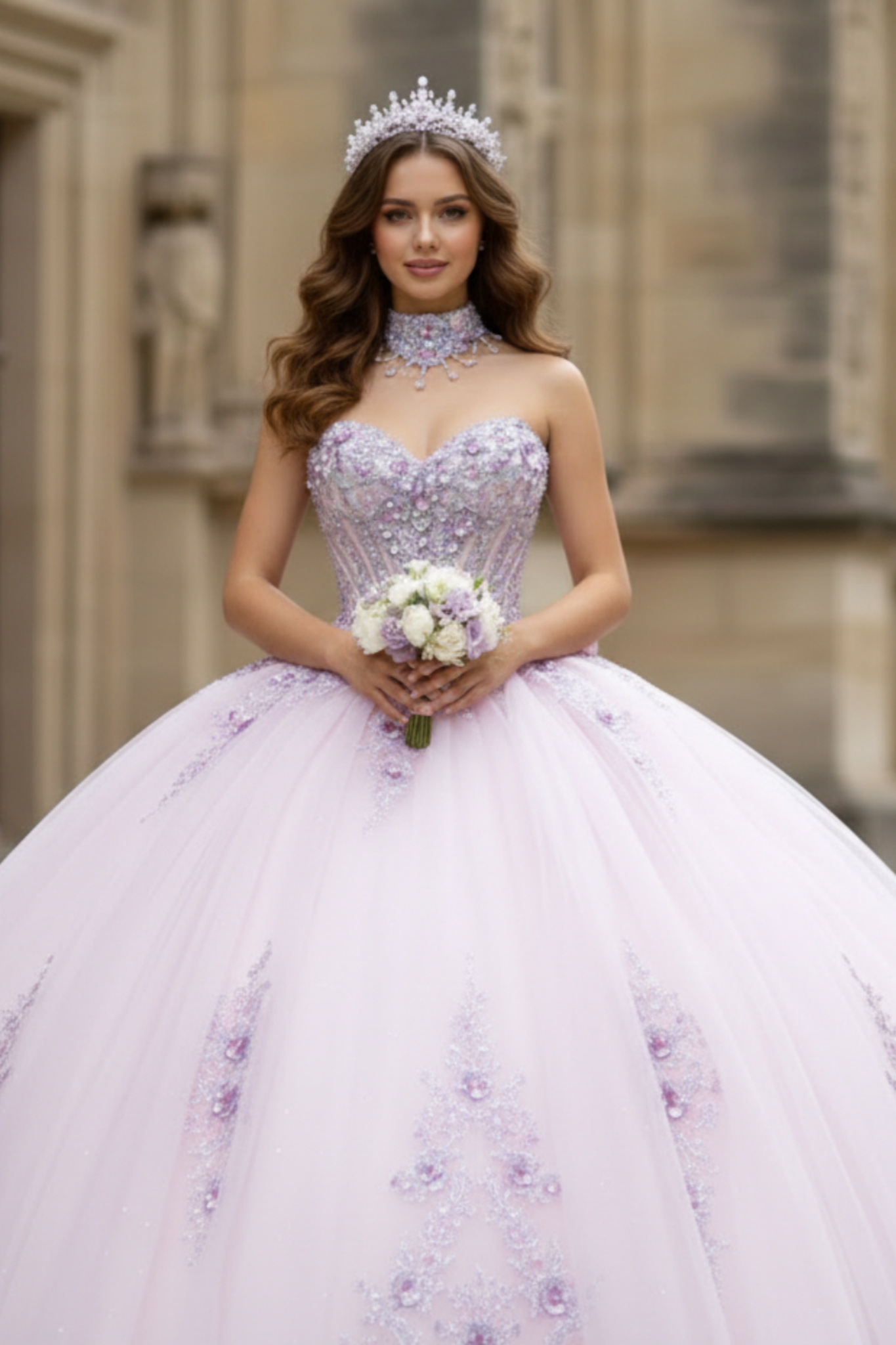 Luxury Lilac Floral Corset Ball Gown Quinceanera Dresses