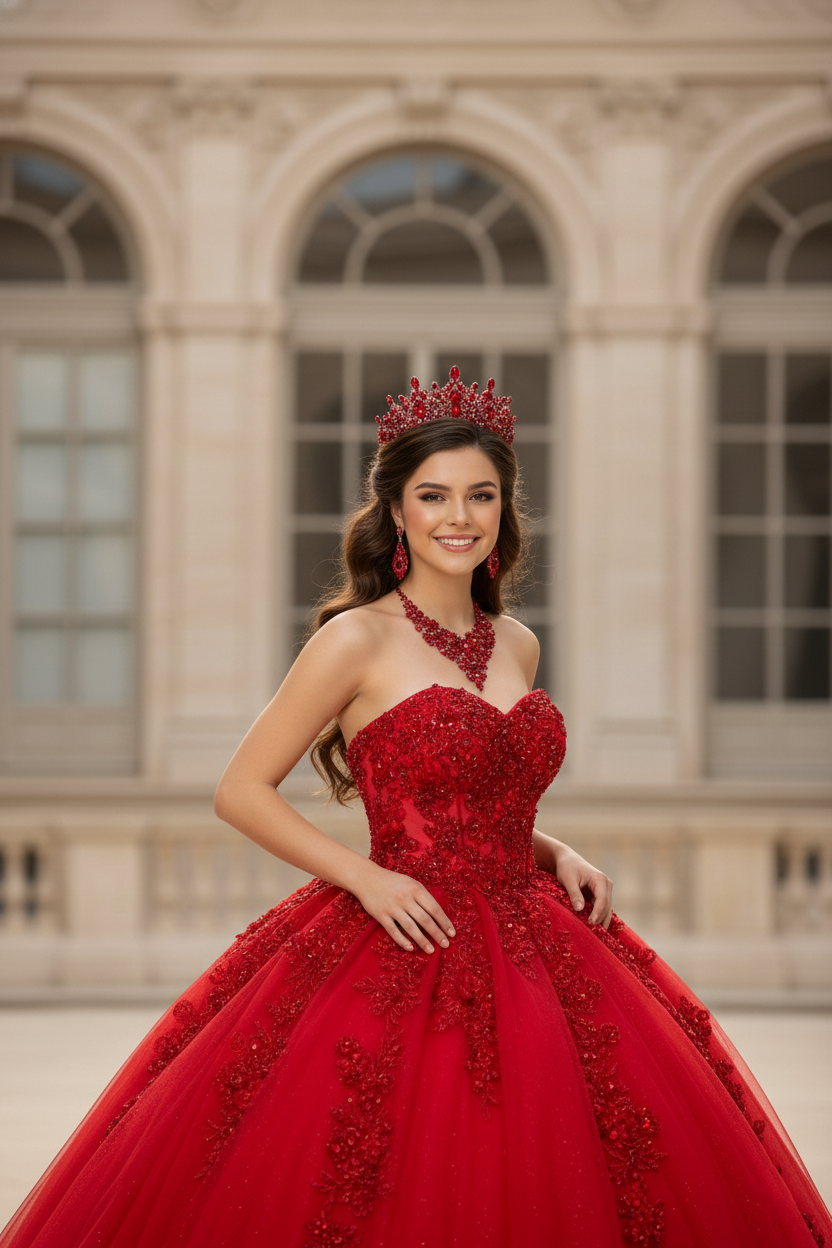 Passionate, powerful, and unforgettable. Our Red Quinceanera Dresses collection celebrates confidence and tradition with dramatic ball gown silhouettes, rich tones, and exquisite detailing. Designed to make your grand entrance bold, radiant, and truly unforgettable.