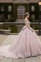 Blush Pastel Floral Couture Princess Ball Gown Quinceanera Dresses