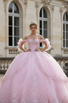 Blush Pink Off-Shoulder Princess Ball Gown Quinceanera Dresses