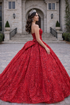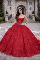 Royal Red Strapless Princess Corset Ball Gown with 3D Floral Embroidery Quinceanera Dresses