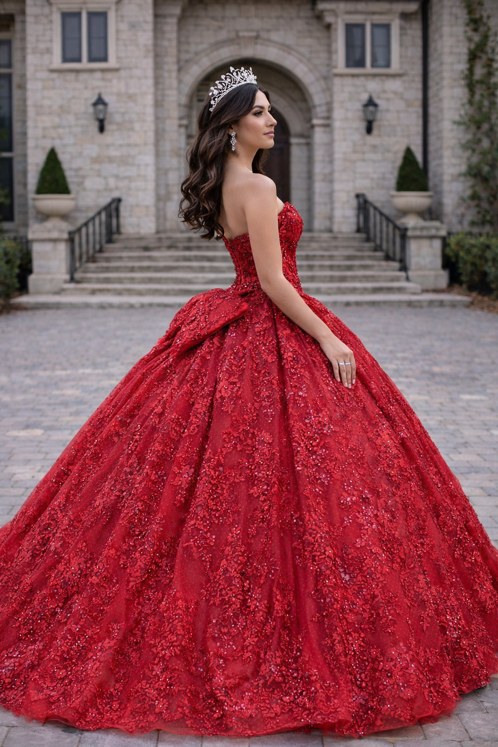 Perfect for royal-themed quinceañeras, Sweet 16 celebrations, formal galas, and milestone events where timeless glamour meets commanding elegance.