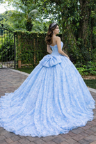 Ice Blue Strapless Princess Corset Glitter Ball Gown with Shimmer Tulle Quinceanera Dresses