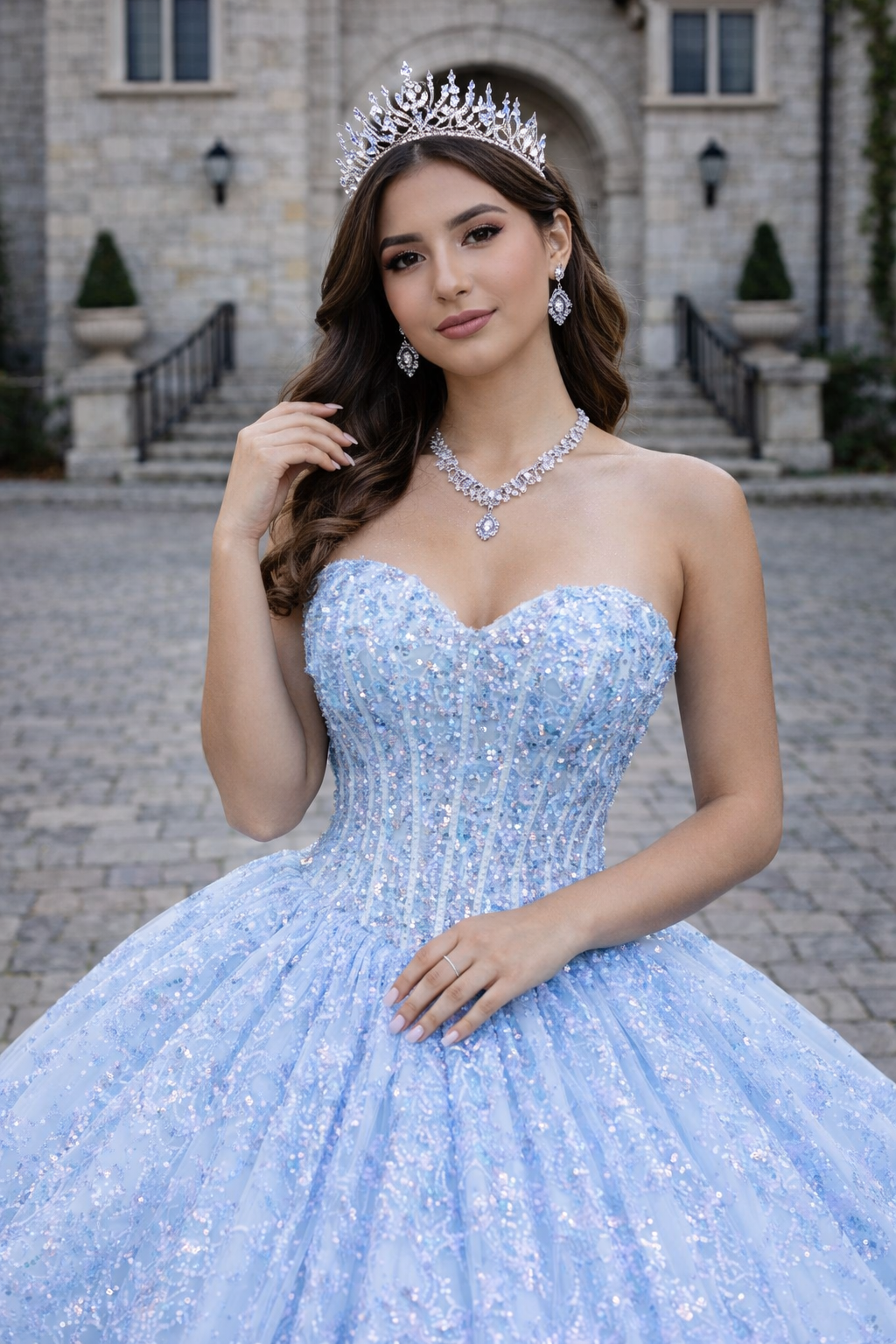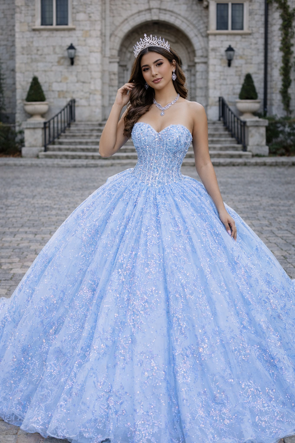 Ethereal, luminous, and effortlessly regal — this Ice Blue Princess Ball Gown captures the magic of a fairytale celebration.