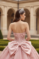 An enchanting blend of softness and regal sophistication, this blush pink Quinceañera gown is designed to make your celebration unforgettable. Featuring exquisite three-dimensional floral appliqués and shimmering embroidery, the gown radiates delicate luxury while maintaining timeless princess elegance.