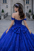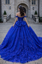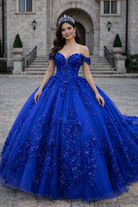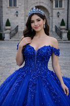 Royal Blue Off-Shoulder Princess Corset Ball Gown with 3D Floral Appliqué Quinceanera Dresses