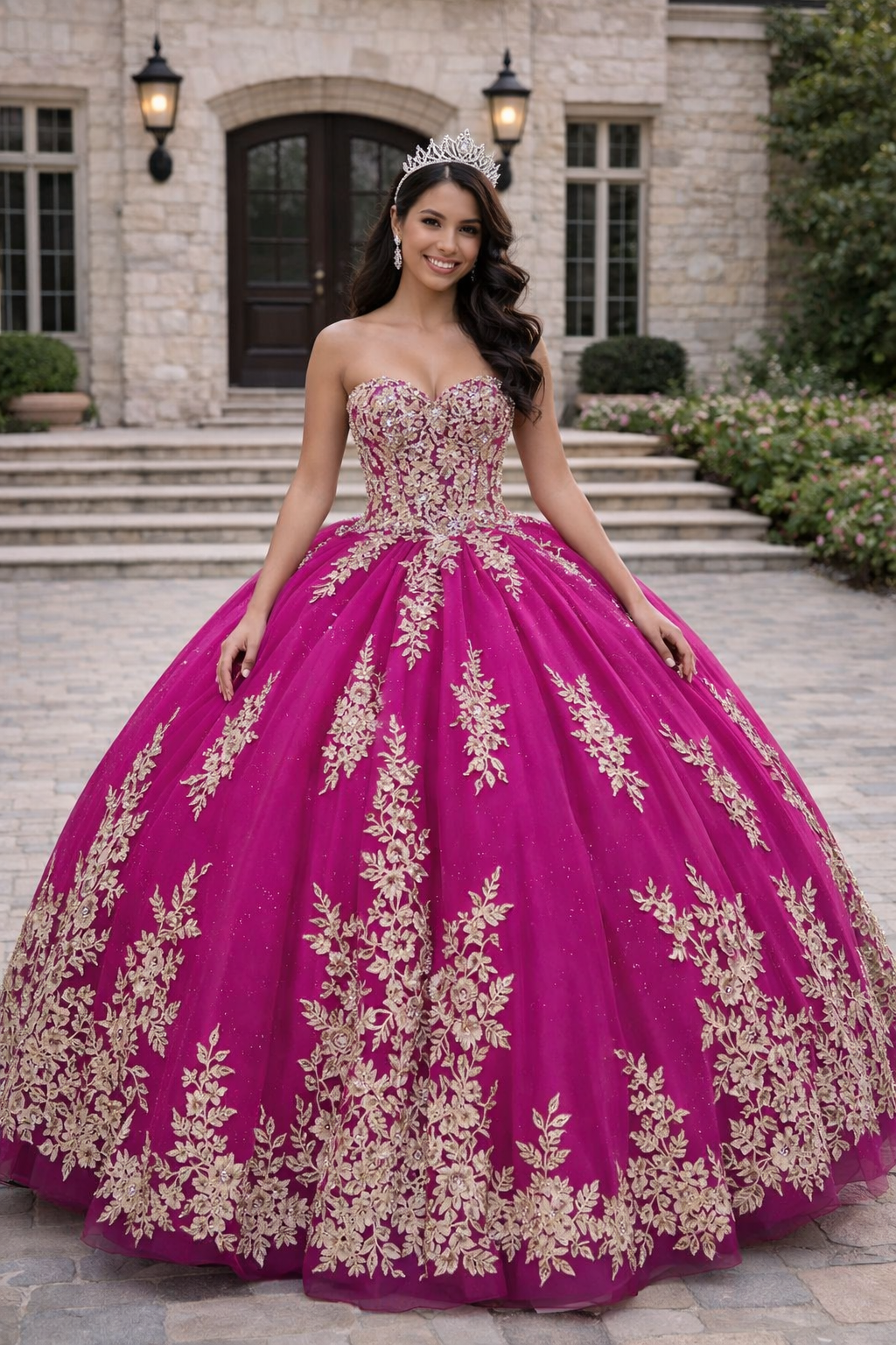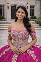 Bold, radiant, and undeniably regal — this fuchsia princess ball gown is designed for a grand quinceañera entrance.