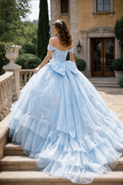 Sky Blue Tiered Tulle Princess Ball Gown Quinceanera Dresses