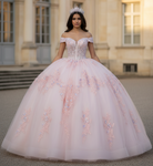 Blush Pink Off-Shoulder Lace Corset Princess Ball Gown Quinceanera Dresses